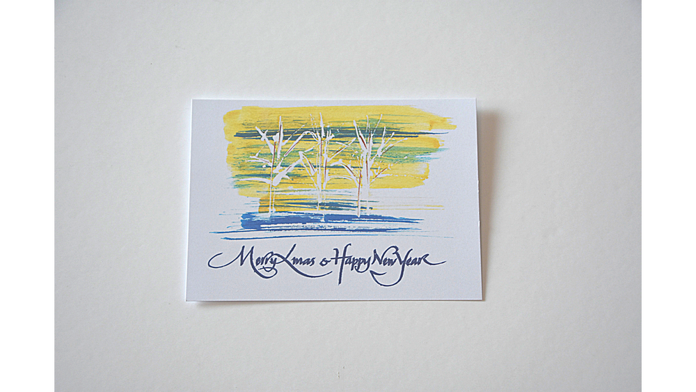 A set of 3 hand painted Christmas cards with hand written calligraphy.